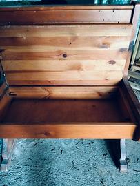 Panca piccola in abete con vano portaoggetti, ben conservata, usata pochissimo, misure: lunghezza.76 cm, larghezza.48 cm, h 85 cm. E' disponibile a Curtarolo Pd