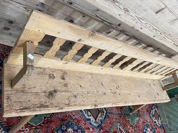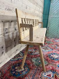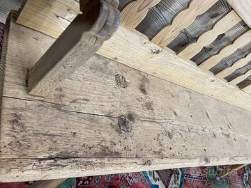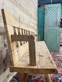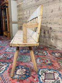 Vecchia panca in abete, di fine ‘800-primi ‘900… da consolidare, non restaurata. Lo schienale è reclinabile, quindi poteva essere utilizzata in due modi.