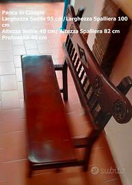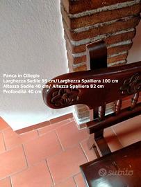 Panca in Legno di Ciliegio, larghezza 92 cm. sedile/100 cm. spalliera, profondità 40 cm., altezza 40 cm sedile/82 spalliera, lavorazione artigianale, ottime condizioni, adatta per molti usi, stato e colori come da foto, vendo 160 euro.