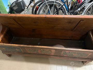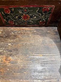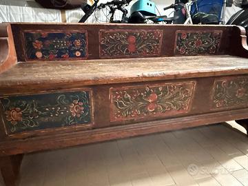 Vendo bellissima panca in legno massello, finemente decorata a mano con motivi floreali, tipico dell'artigianato dell'arco alpino del primo '900.