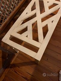 Bellissima panca intarsiata colore bianco satinato, pezzo unico della Cyrus Company, reversibile e utilizzabile in diversi modi anche come mensola di appoggio. Il colore è splendido. Dimensioni 155x45 h. 41 cm