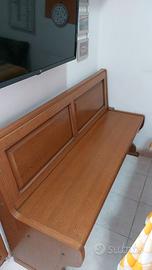 Panca in legno, colore cigliegio, con vano contenitore per ripostiglio, lunghezza 140cm, alta 86cm, profondità 47cm