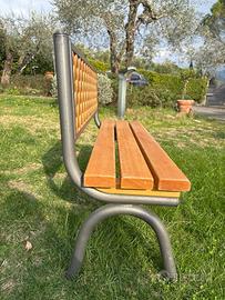 Panca in legno e ferro idoneo per due/tre sedute. Ottimo per arredare immobili sia ad uso abitativo che ad uso commerciale (uso interno). Dimensioni: altezza 83 cm, larghezza 130 cm, profondità seduta 32 cm, profondità (schienale compreso) 49 cm.