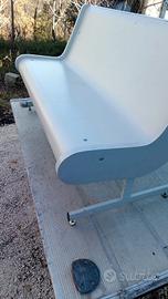 panca in metallo con seduta in legno bianco. profondità circa 70 cm . lunghezza 145.