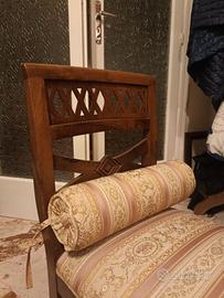 Dotata di due cuscini cilindrici laterali con bottoni centrali e passamaneria dorata.
