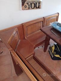 Vendo per trasloco panca in legno con vani contenitore angolare a L (lato lungo 1.55cm ( angolo 63cm / lato corto 78cm)