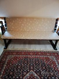 panca in legno con cuscini per seduta e schienale in stoffa larghezza cm.187 larghezza seduta cm 43 altezza cm94 appoggio a terra cm 60