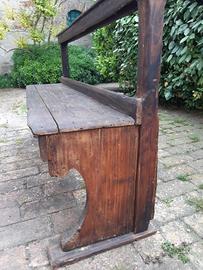 antica panca fine '800, da restaurare. Danneggiata da fuoco, parti bruciate rimosse e levigate. presenza di tarli.