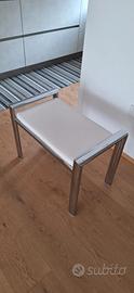 Struttura molto solida in acciaio cromato con seduta imbottita in similpelle bianco naturale.