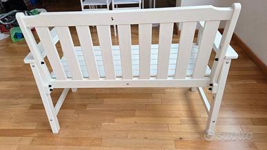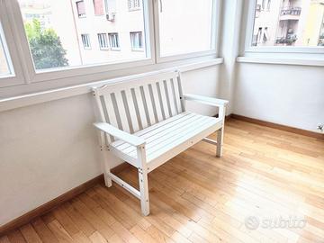 Bellissima panca per giardino color bianco latte luminosissimo.