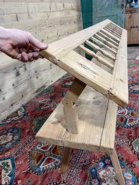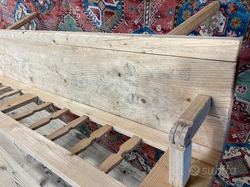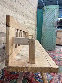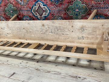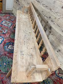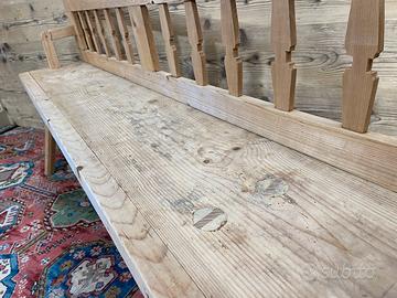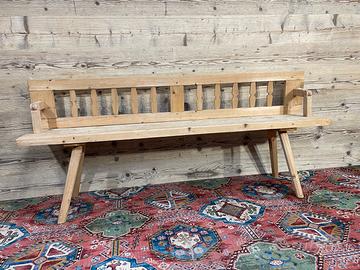 Vecchia panca reclinabile in abete di fine ‘800 – primi ‘900, in buone condizioni, ma non restaurata. Dimensioni massime di ingombro 191 × 33 cm ed altezza 82 cm, altezza seduta 50 cm. Tenendo conto delle gambe la Panca ha una profondità di circa 45 cm, in quanto sporgono un po’ più della seduta.