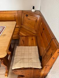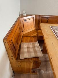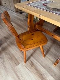 Vendo come da foto tavolo sedia panca stile montagna / tirolese in alcuni punti è un po’ rovinato ma per chi non ha grosse pretese va benissimo, possibile trasporto in base alla distanza con aggiunta di costo, la panca misura 127x127