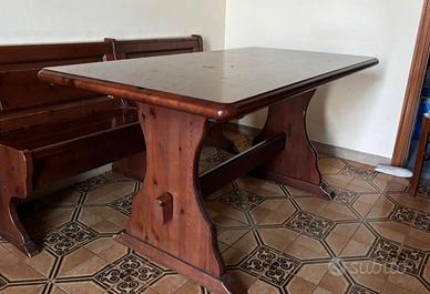 Vendo questa panca con sedute apribili adatte per contenere oggetti insieme a questo tavolo allungabile con prolunghe fino ad arrivare a 10 posti