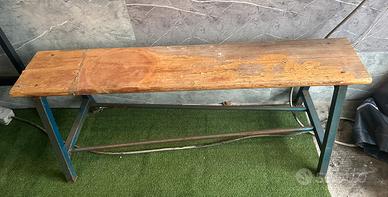 Panca vintege in ferro pieno con seduta in legno. Da ristrutturare