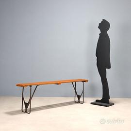 Panchetta vintage richiudibile con gambe in metallo e seduta in legno di faggio