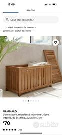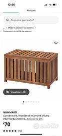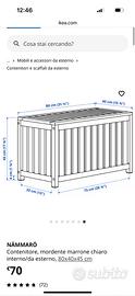 Panche Contenitore Nammaro di Ikea 2 panche - vendo insieme Regalo 4 cuscini bianchi con sottili righe rosse Misure nella foto 3 Prezzo in negozio 70€ l’una; vendo 50€ per 2 panche