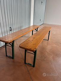 Vendo due panche da paninoteca, street food, birreria. Molto solide, sicure e ben tenute . Altezza 48 centimetri Lunghezza 1,70 metri Larghezza 27 centimetri . Il prezzo (60) si riferisce alle due insieme, poco trattabile. Solo per ritiro diretto ad ATRI (Teramo)