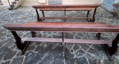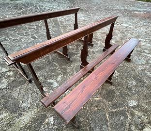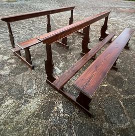 Coppia di panche da chiesa con inginocchiatoio. Misure: 223 cm larghezza, 78 cm profondità e 85 cm altezza. Vendo a 55 euro cadauna. Vendibili anche singolarmente. Possibilità di consegna a domicilio in funzione della zona.