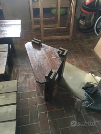 Panche molto robuste, struttura perfetta senza danni o riparazioni da effettuare, necessitano solamente di una piccola rinfrescata alla vernice per uniformare il colore.Buone sia per taverna che per giardino.
