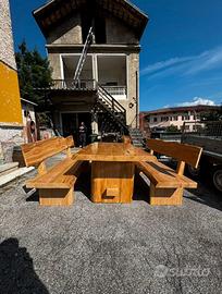 tavola e due panche realizzate in legno di ciliegio