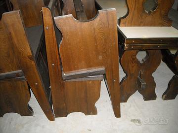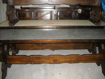 vendo 4 panche lunghezza 2.40 mt e 3 tavoli 2.40x 0.60 in legno massiccio,il piano tavolo rivestito in formica. tenuti molto bene, causa inutilizzo. valuto offerte
