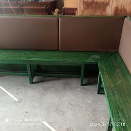 5 panche in legno verde con schienale imbottito in similpelle Marrone tutte e cinque fanno 6,68 mt per 2,10 mt