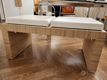 VENDESI N.4 ELEGANTI PANCHE IN LEGNO MASSICCIO ZEBRANO CON CUSCINI IN PELLE BIANCA IN OTTIME CONDIZIONI (IDEALI ANCHE PER UFFICIO). DIMENSIONI LARGHEZZA CM.100 E PROFONDITÀ CM 50. RITIRO A SEREGNO. EURO 400,00 CAD.