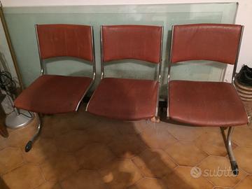Coppia di panche da tre sedute con telaio in acciao