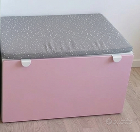 Panchetta Cameretta Bimbi IKEA SMÅSTAD / PLATSA [90x52x48 cm] con Cuscino Originale - IKEA Pari al Nuovo Vendo questa deliziosa panchetta multifunzione IKEA SMÅSTAD / PLATSA, perfetta per la cameretta dei bambini. È un capiente cassetto estraibile con struttura bianca e accenti rosa pallido, include il cuscino originale morbido per sedersi comodamente, leggere un libro o rilassarsi. Dimensioni compatte ideali per spazi piccoli, facile da spostare e pulire. Condizioni pari al nuovo, usata pochissimo e sempre curata. Ritiro a mano a Cassina Rizzardi (CO). Contattami per info o visita!
