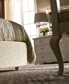 Panchetta classica in legno massiccio in finitura avorio patinato, da collocare ai piedi del letto matrimoniale.