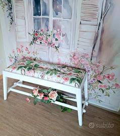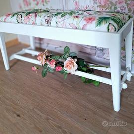 Panchetta in legno con seduta in tessuto, lunghezza 95 cm altezza 50 cm e larghezza 40 cm visibile a Carpi ( mo)