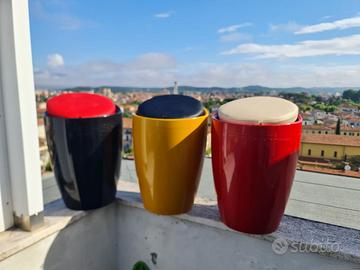 3 panchetti da esterno e interno. Cuscini di pelle appena rifatti. comodissimi per contenere oggetti da giardino, giocattoli, differenziata