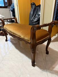 Panchetto imbottito in stile classico, struttura robusta in legno con gambe sagomate. Molto comodo e perfetto per camere da letto o ingressi. Ottime condizioni. Per qualsiasi domanda non esitate a contattarmi. Altezza 55cm Lunghezza 110cm Larghezza 40cm