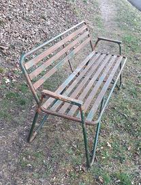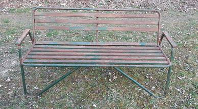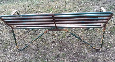 Vendo panchina in ferro anni '60, vintage, in buone condizioni come da foto, una bella patina del passato infatti sono presenti tre colori, rosso, giallo e verde sulla vernice, misure altezza con schienale 70 cm, lunga 147 cm, profondità 50 cm. Solo ritiro a mano. Prezzo 80 euro. Per ogni info e dettagli contatto solo via telefono o Whatsapp al numero 349-0869294.