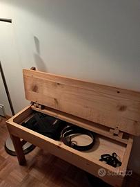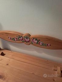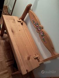 Panchina in pino decorata a mano. Misure lunghetta 74 cm. Altezza 44 cm.