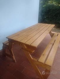 PANCA / TAVOLO DA GIARDINO APRIBILE IN LEGNO MASSELLO DI ABETE REALIZZATA A MANO MADE IN ITALY