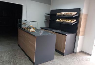 Panetteria completa neutra da 200 in legno, linea "Bistrot Easy Kit 643", con Banco e Retrobanco: