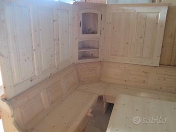 Pannellatura completa di mobile ad angolo dalle misure 195 x195 altezza 100 tutto in abete massello .( in foto è quella più piccola da 155 x 155 altezza 100 )