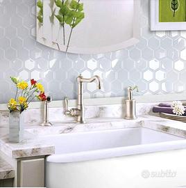 Pannelli decorativi di carta adesiva impermeabile per muro / parete, effetto piastrelle 3D a forma di alveare o nido di ape, 4 pezzi di dimensioni 29,5 x 29,5 cm.