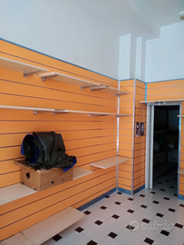 Vendo arredamento usato composto da 10 pannelli dogati da 180x240h colore arancio completo di inserti e cornici in alluminio con possibilità di mettere mensole in legno