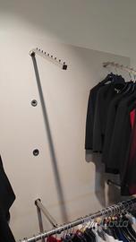 Sette pannelli espositivi con mensole in cristallo o barre appenderia, intercambiabili. Misure: larghezza 125 cm e altezza 220 cm. 150 € ognuno oppure 900 € tutti e sette.
