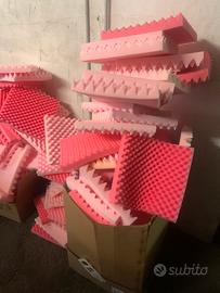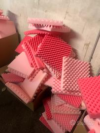 Vendo circa 20 m quadri di pannelli fonoassorbenti piramidali, 30 × 30 spessore 5 cm, color rosa di due tonalità diverse con i quali si può comporre una scacchiera sulle pareti o soffitto ideali per studi di registrazione sale d’ascolto eccetera solo ritiro a mano in zona Roma e provincia visto l’elevato ingombro