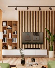 Bellezza, semplicità e funzionalità Lo spazio che abiti ogni giorno merita non solo una funzionalità affidabile, ma anche un design curato e un aspetto distintivo. A volte, basta poco per rendere un interno ordinario più espressivo, più bello e davvero unico. I pannelli acustici su feltro offrono una soluzione unica che combina utilità ed estetica per creare interni che non solo sono belli da vedere, ma beneficiano anche di un'acustica migliorata. Si adattano facilmente a una varietà di esigenze e stili, e il numero di possibili layout è limitato solo dalla fantasia. Un'ampia gamma di colori disponibili amplia ulteriormente le possibilità decorative. Altrettanto importanti sono la facilità di installazione, la durata e le qualità ecocompatibili. Scegliendo lamelle realizzate in MDF massiccio riciclato montate su feltro di alta qualità, contribuisci alla sostenibilità ambientale e all'uso responsabile dei materiali.