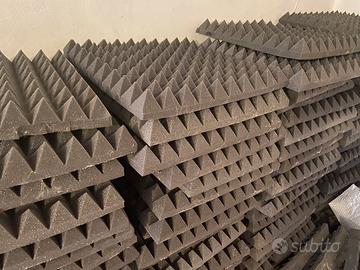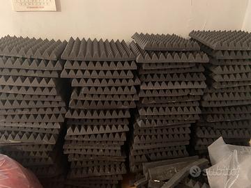 Vendo 5 pacchi da 20 pannelli ciascuno di pannelli fonoassorbenti piramidali Keyhelm 50x50x6 cm, densità D25 — il modello più apprezzato per la correzione acustica di medio-alte frequenze (500–4000 Hz). 100 pannelli totali, pari a 25 m². Prodotto originale: Poliuretano espanso 100% Made in Italy Anallergico, non si sgretola nel tempo Dimensioni: 50x50 cm, spessore 6 cm (base 2 cm + piramide 4 cm) Condizioni: I pannelli erano applicati a parete con colla spray e sono già stati staccati. Sono in ottime condizioni: basta una passata di aria compressa per rimuovere la polvere superficiale e sono pronti per essere riutilizzati. Nessun danno strutturale, nessuna deformazione. Motivo della vendita: mi trasferisco e non ne ho più bisogno Prezzo nuovo su Amazon: oltre €80/pacco. Vendo l'intero lotto a 200€ circa