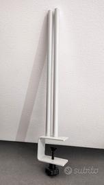 Dispongo di 4 elementi metallici come quello in foto con morsetto per fissaggio a scrivania di due pannelli (il pannello viene posizionato in verticale, sorretto e "pinzato" da una coppia di elementi con morsetto agganciati al bordo del tavolo).