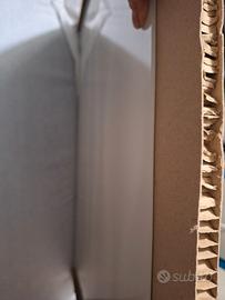 2 confezioni da 4 pannelli in vetro bianchi con decoro ad onde come da foto. Nuovi, imballati ed inscatolati, ma usati o montati ma aperta una confezione solo per fare le foto.