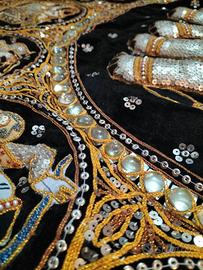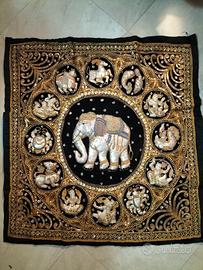 Quadro pannello con paillettes e pietre e ricami dello zodiaco comprato in Thailandia. Artigianato thailandese, mai utilizzato conservato in armadio in ottime condizioni. Misure lunghezza cm 102 altezza cm 107