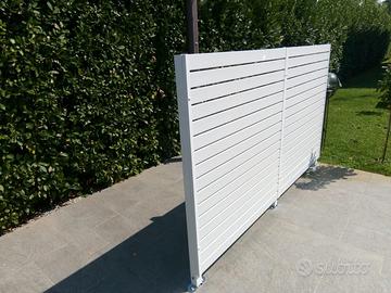 Pannello cm 100x180 frangivento/ frangivista/recinzione in PVC. A richiesta può essere sorretto da paletti 7x7x185 in alluminio verniciato. Oppure da una fioriera o una seduta con o senza cuscino.