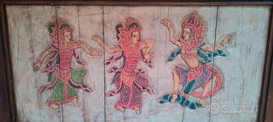 Particolare pannello in legno teak con decorazioni in alto rilievo 1970 160 cm lunghezza 90 cm largo 4 cm spessore