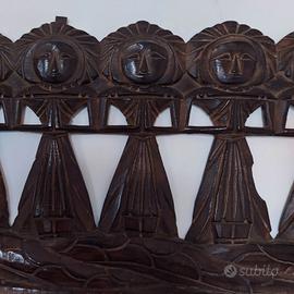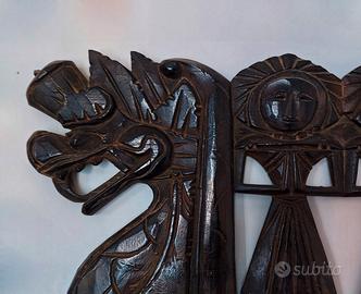 Pannello decorativo in legno con due draghi e figurine geometriche. Legno scuro. misure. 100x30 profondità 2. Dotato di gancetto per appenderlo Disponibile a inviare altre immagini meglio una consegna a mano, Novara o Milano